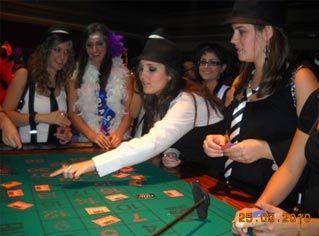 Si te gusta el cabaret y el estilo de los años 20, te invitamos a vivir una noche muy especial en el Casino Años 20. La limusina os conducirá hasta este especial casino, en donde disfrutaréis de una cena estilo coctail, barra libre, podréis apostar en las mesas casino al Black Jack, Ruleta Francesa, Battle Royale, y todo ello mientras disfrutáis del espectáculo que os ofrecerán Vito Corleone y su encantadora mujer.